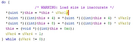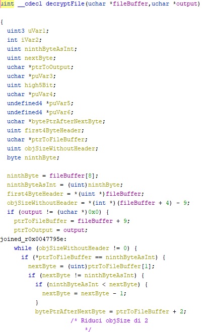 I quickly found where the decompression operation is executed. Ghidra wasn’t really helpful, as you can see from this image (and this is after I’ve modified manually the decompiled code):